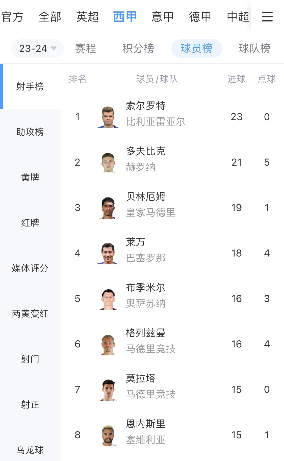 05月20日宣 西甲第37轮,皇马客场4-4战平比利亚雷亚尔,黄潜挪威前锋索尔罗特上演大四喜,在还剩最后一轮的情况下,目前以23球(0点球)领跑西甲射手榜。