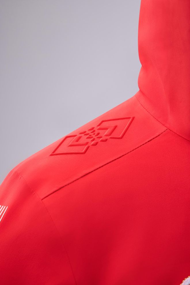 与比赛装备不同,领奖装备是陪伴运动员登上领奖台的“战袍”,它承载着一个独特且重要的使命:伴随国歌奏响、国旗升起的荣耀时刻,它必须在设计上,传达出代表国家的文化美学与精神面貌,同时在功能上,满足专业运动员在冬奥会多样化场景下的切身需求。